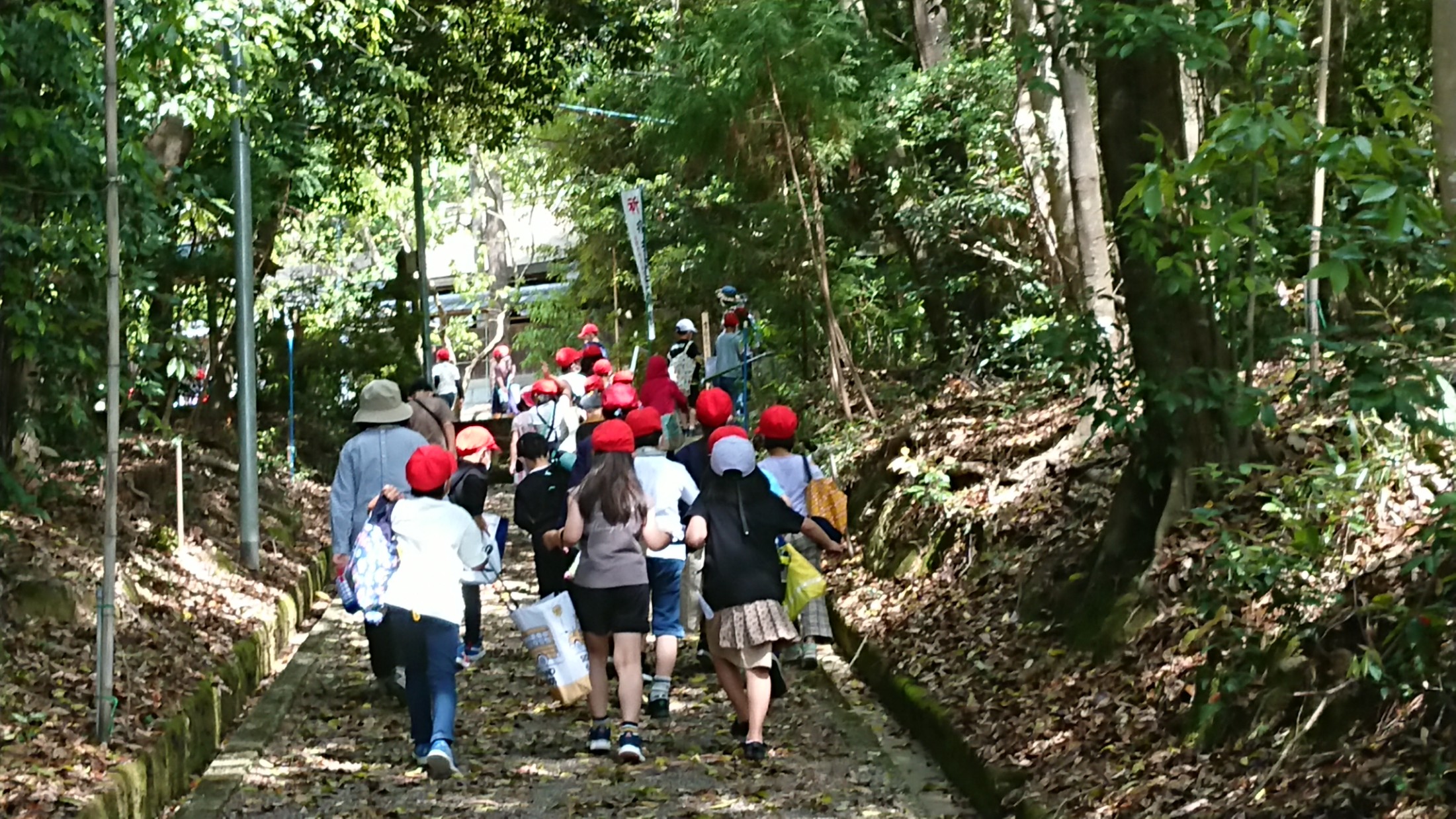 山口神社を出ようと参道を歩いていると、先ほどの子どもたちと再び会いました。
