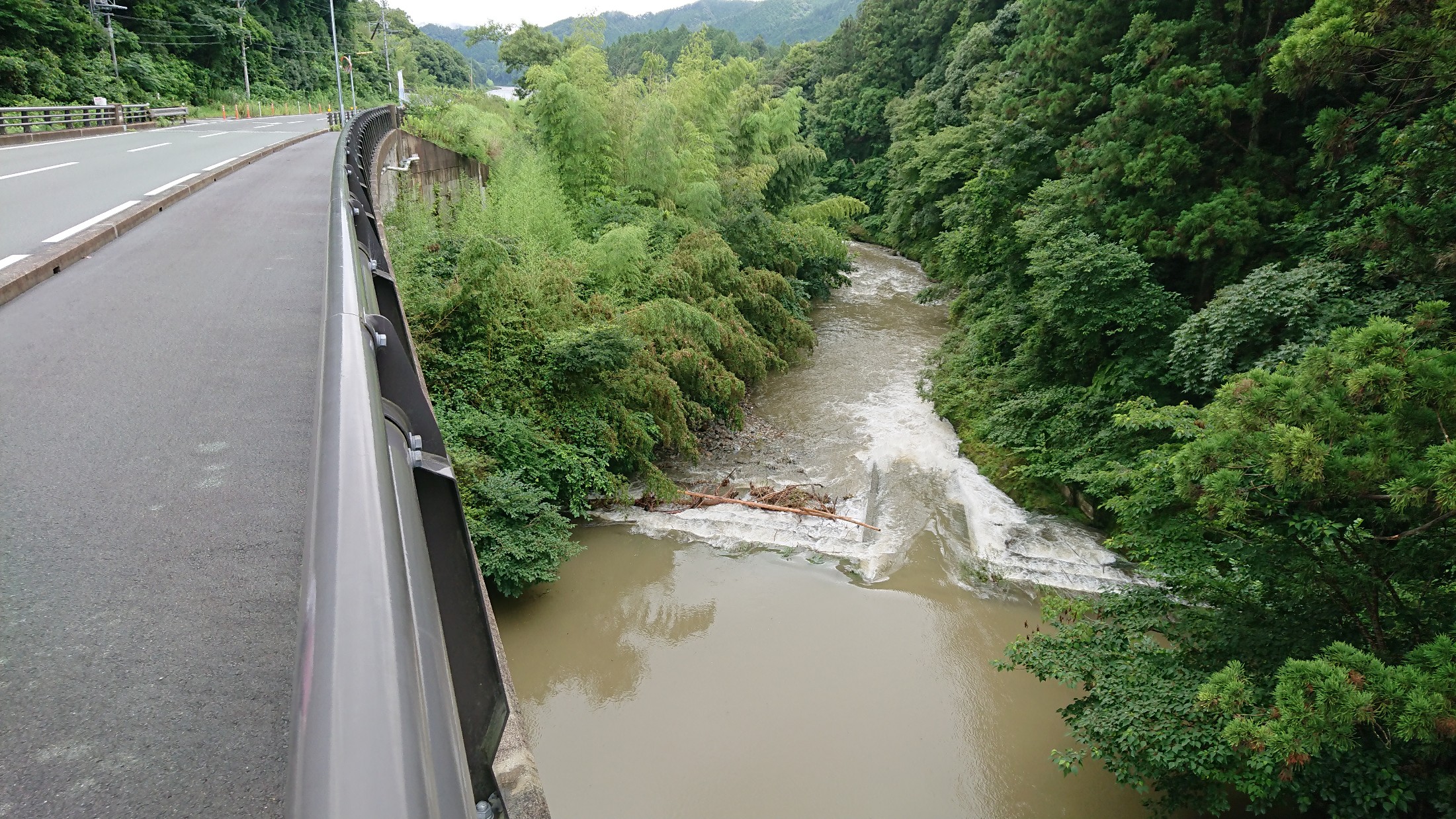 しばらくは広い道を歩きます。 「濁川」と書いていました。 大雨の影響もあったのでしょうが濁っています。
