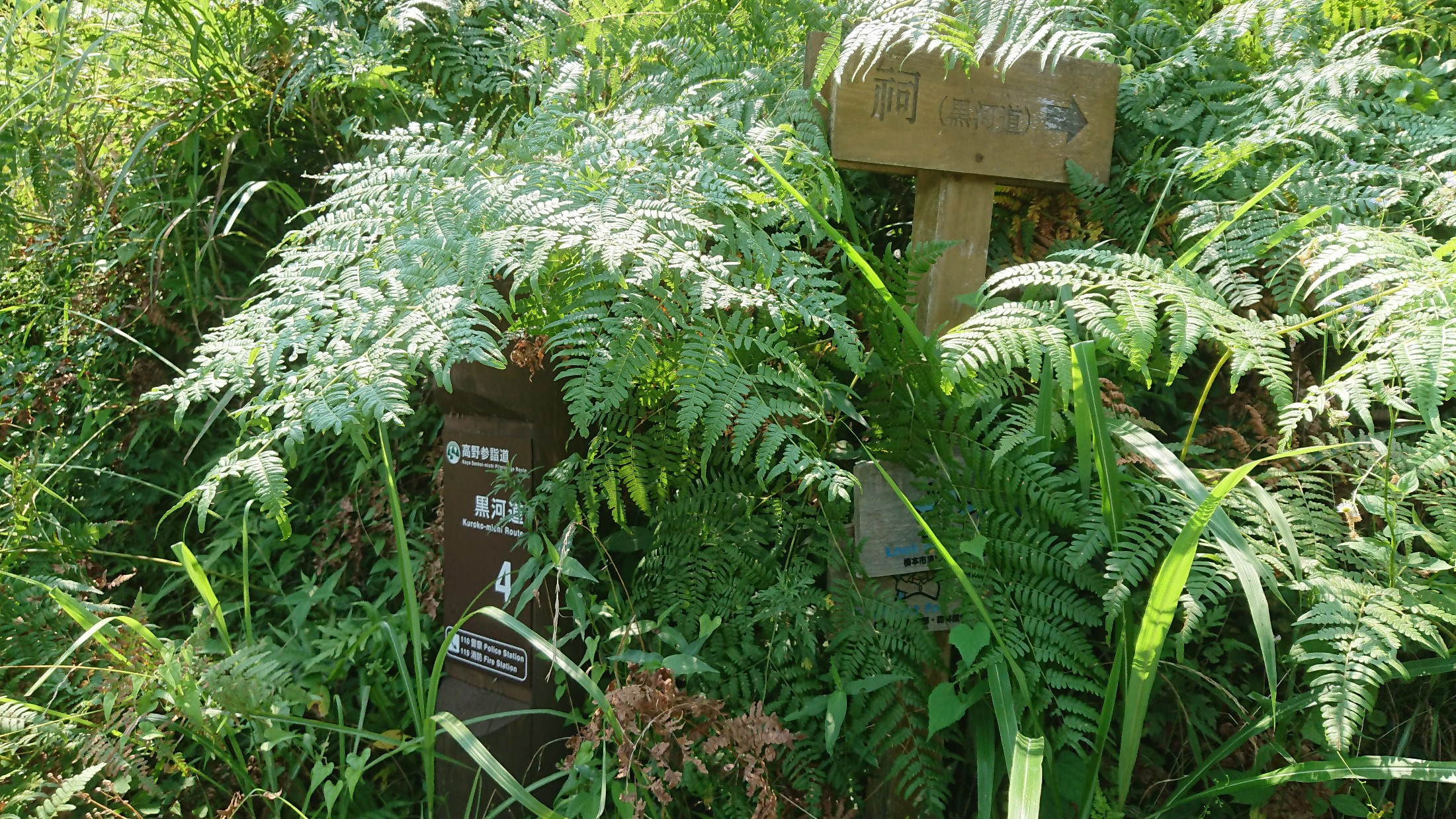 ここに女鬼峠と熊野古道の説明看板がありました。 やはり、伊勢方面から歩く人が圧倒的に多いのでしょうね。 あ、ちなみに、伊勢路には「デジタルスタンプ」があります。 写真の中で説明板の右に写っている「5女鬼峠北」と書かれている看板です。 携帯からQRコードを読み取ると一瞬でデジタルスタンプ帳に押印できます。 結構便利ですよ。 インク切れの心配も、押し間違いの心配もなしです。 添乗員さんも大喜び?(笑)