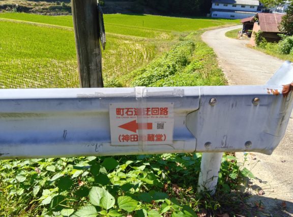 少し脇道に入り、未舗装の道を進むとお地蔵さんが現れます。 道中安全のお地蔵さんらしいのですが、新しい道路か建設されて現在の地に移されました。 現在でも逵(つじ)氏がこのお地蔵さんの世話をしているそうです。 このあたりには難しい漢字の「逵」さんが多いです。