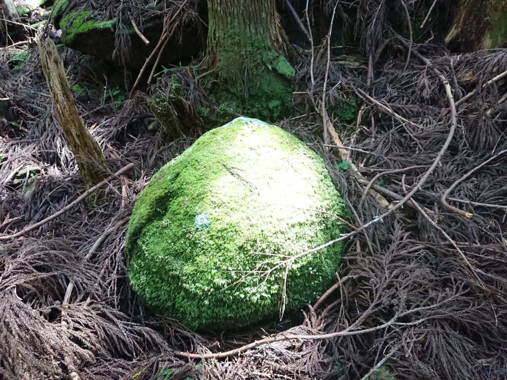 苔は一旦なくなると、次に同じ状態になるまで相当な時間がかかります。大雲取越の円座石の苔も、2015年に何者かによって剥ぎ取られてから、まだ完全に回復していません。